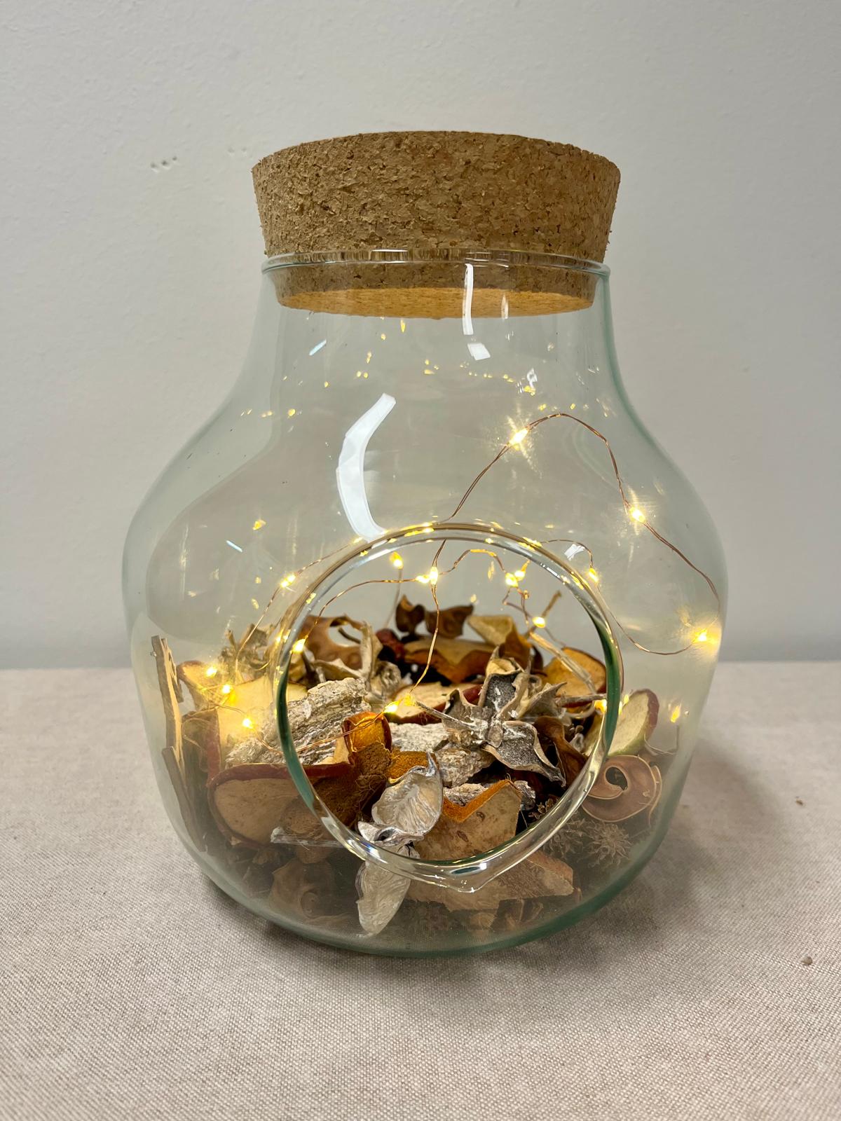 Creëer een prachtige decoratie met deze glazen deco bol. Perfect om te vullen met lichtjes en kleine ornamentjes!