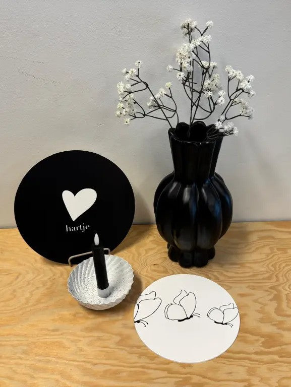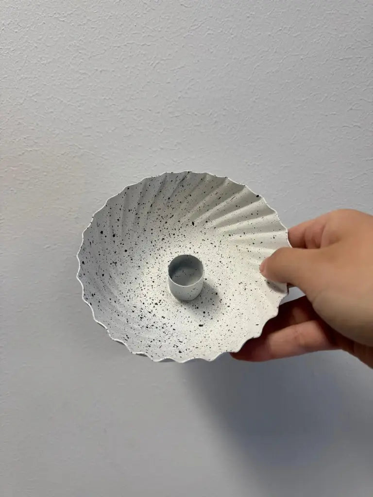 Breng een moderne en stijlvolle uitstraling in je interieur met deze prachtige kandelaar Dante van metaal. Het witte design met zwarte spikkels zorgt voor een trendy en eigentijds accent.