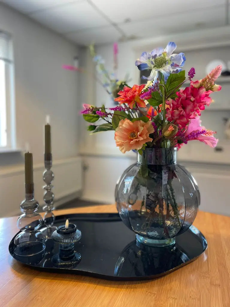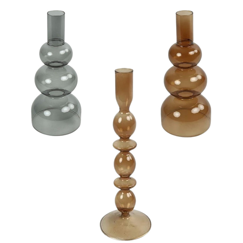 Deze elegante glazen kandelaar brengt instant sfeer in je interieur. De amber variant zorgt voor een warme touch, terwijl de smokey variant in antraciet een stoere en moderne uitstraling heeft. Beide varianten zijn prachtig te combineren of apart te gebruiken. Perfect voor een romantisch diner, als decoratief element op je eettafel, dressoir of vensterbank.