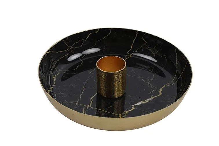 Ontdek de veelzijdige kandelaar Lexi in een stoere combinatie van zwart met goud en marmer effect. Een uniek 2-in-1 concept: schaaltje én kandelaar in één!