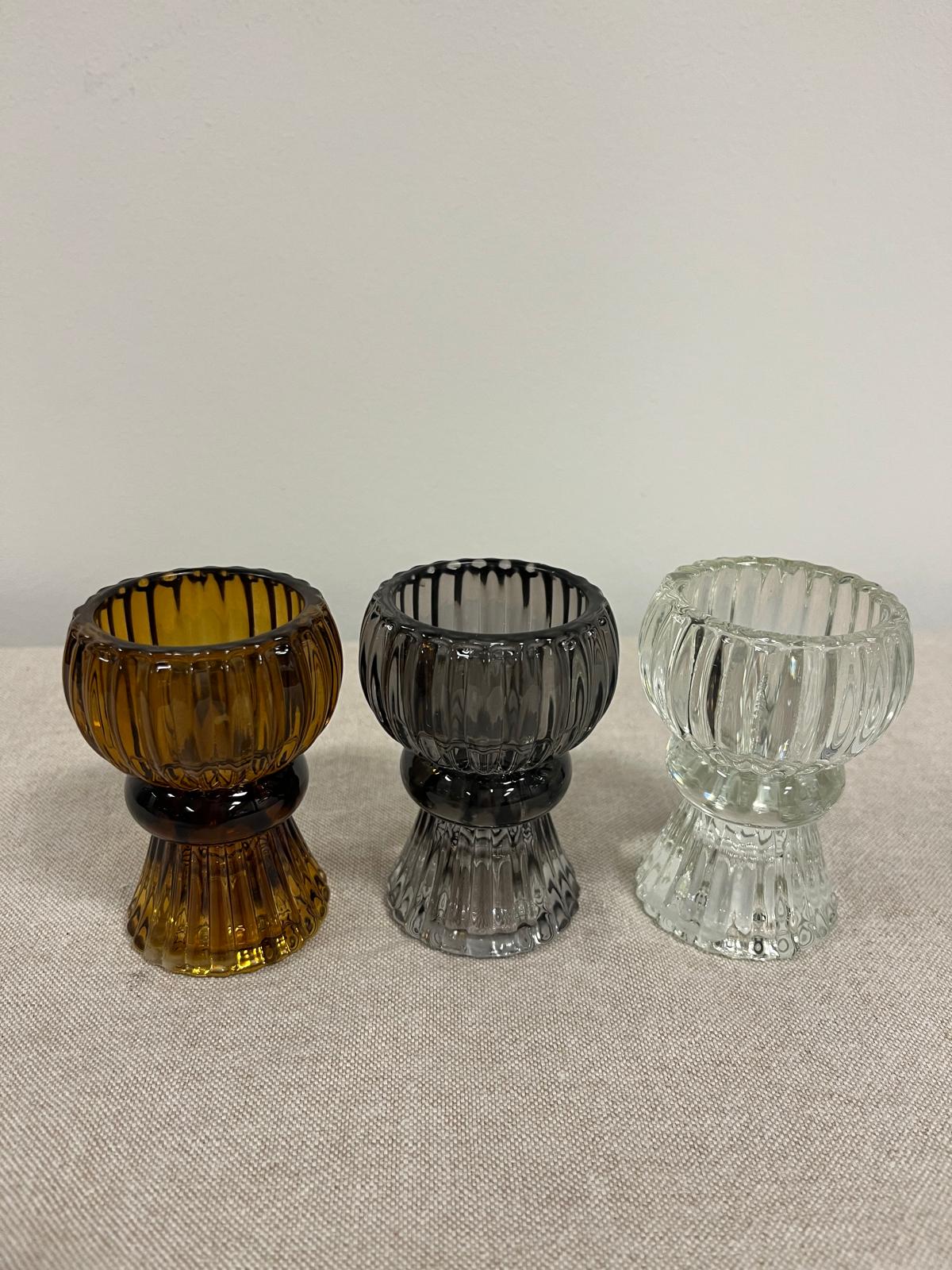 Kies de kleur die het beste bij jouw interieur past: transparant voor een lichte, klassieke uitstraling, amber voor warme, gezellige tinten, of antraciet voor een moderne, stoere look. Het glazen materiaal laat het kaarslicht mooi schijnen en creëert een sfeervolle ambiance.
