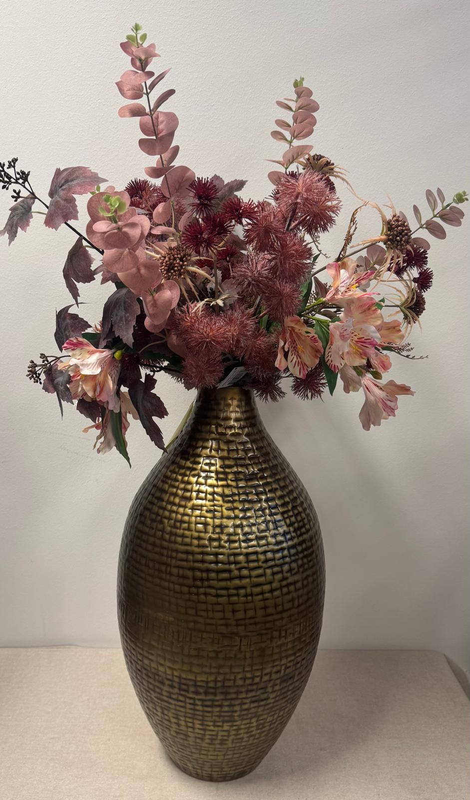 Grote vaas Lux, prachtig met een groet boeket kunstbloemen.