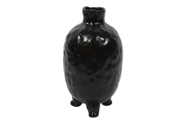 Uniek gevormde zwarte vaas op pootjes. Gemaakt van keramiek.