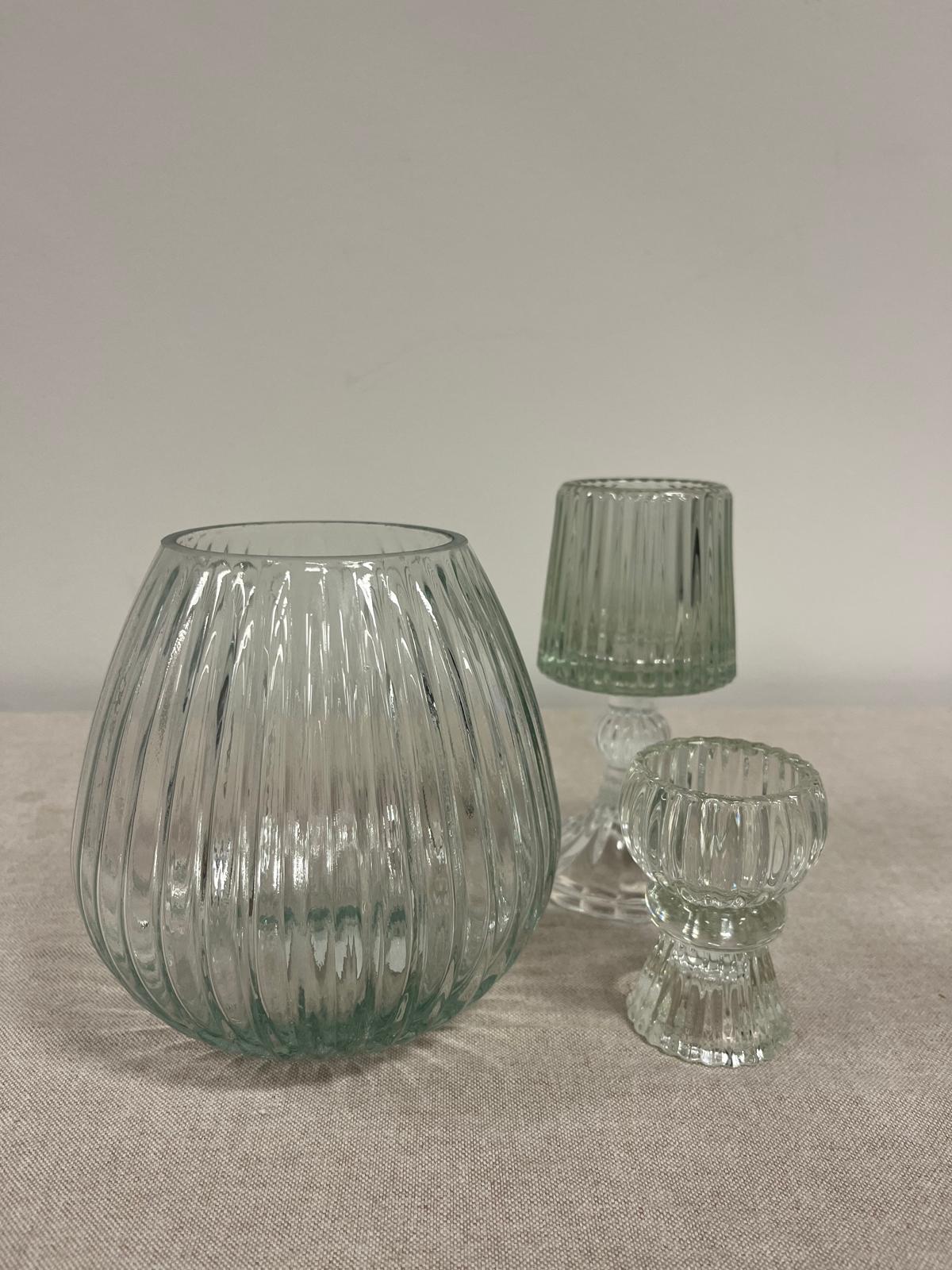 Lulu is gemaakt van transparant glas met een subtiele blauwe gloed, wat een zachte, serene uitstraling geeft. De wijnglasvorm maakt deze waxinehouder uniek en elegant - perfect voor een gedekte tafel, romantisch diner of als decoratief element op je dressoir. Het kaarslicht schijnt mooi door het glas en creëert een warme, intieme ambiance.