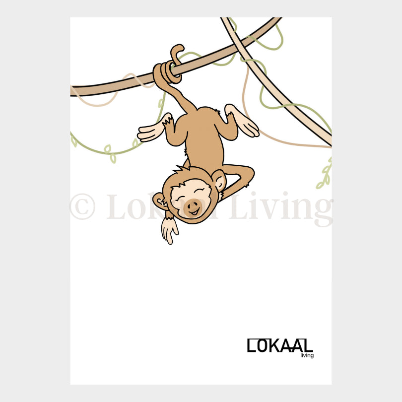 Deze vrolijke Wenskaart Aap van Lokaal Living toont een speelse illustratie van een aap. Perfect om iemand aan het lachen te maken en een beetje apenstreken in hun dag te brengen!