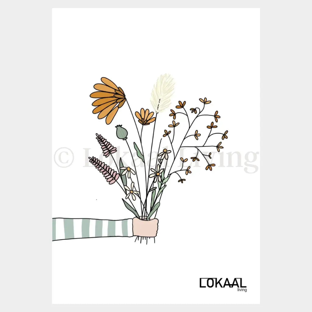 Deze bloeiende Wenskaart Boeket van Lokaal Living toont een prachtige illustratie van een boeket bloemen. Perfect om iemand de schoonheid van bloemen te geven zonder dat ze verwelken - deze blijven voor altijd mooi!