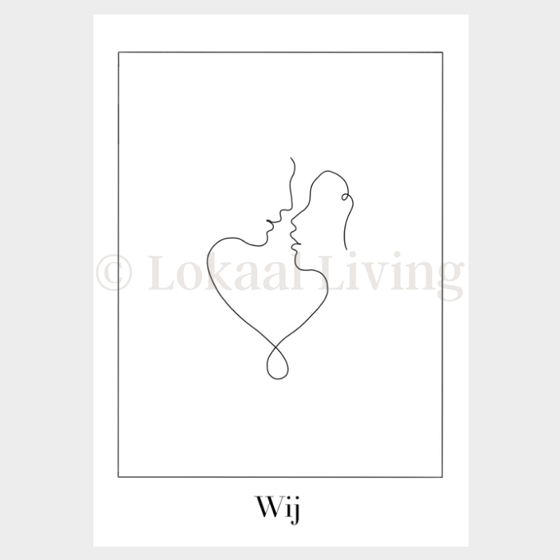 Deze romantische Wenskaart Koppel van Lokaal Living toont een prachtige line art van een stelletje in tijdloos zwart-wit. Het minimalistische ontwerp straalt pure liefde en verbondenheid uit.