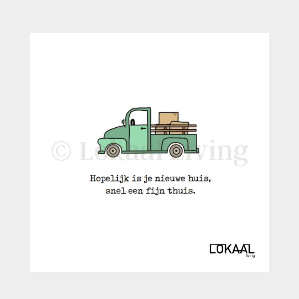 Deze unieke Wenskaart Nieuw Thuis van Lokaal Living is perfect om iemand te feliciteren met hun nieuwe woning. Het gezellige ontwerp straalt warmte en thuisgevoel uit en maakt elke verhuizing een beetje specialer.