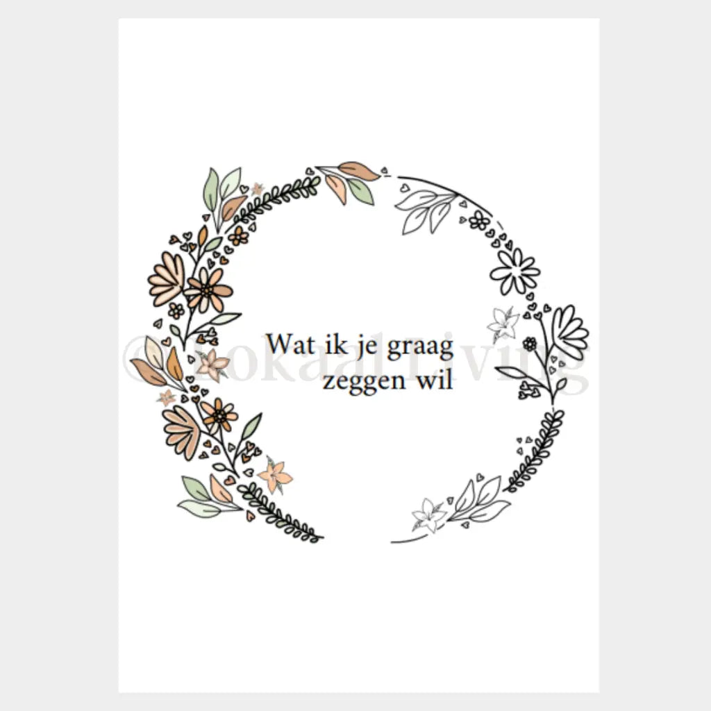 Deze bijzondere wenskaart laat ruimte over voor jouw persoonlijke woorden in allerlei situaties. Of je nu lieve woorden wilt delen, trots wilt uitspreken, liefde wilt betuigen, excuses wilt maken, iemand wilt bedanken of sterkte wilt wensen - deze kaart past zich aan jouw gevoel aan.